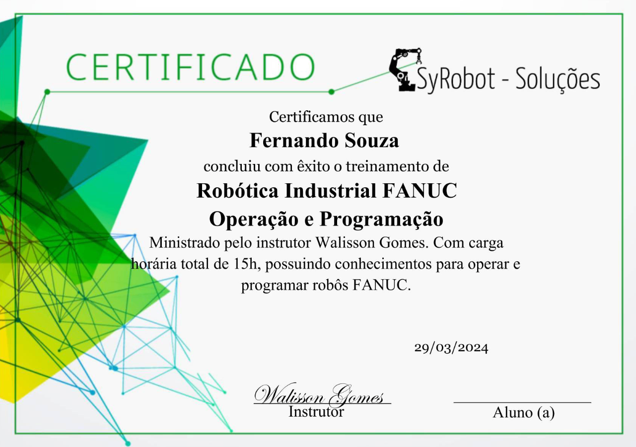 *Será gerado um certificado para o treinamento do FANUC e um para o ABB
